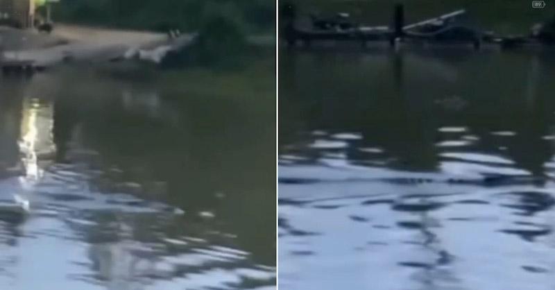 Dalam video yang diterima Indosultra.com, buaya tersebut terlihat muncul ke permukaan sungai dan berenang dengan santai di sekitar area penyebrangan.