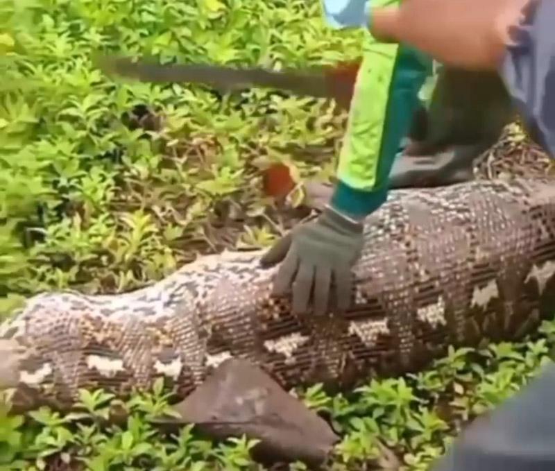 Pemandangan tersebut memicu berbagai reaksi, mulai dari rasa takut melihat ukuran ular piton yang diduga panjangnya mencapai beberapa meter.