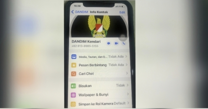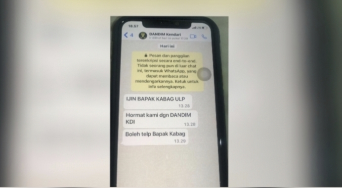 Melalui WhatsApp, si oknum mencantumkan foto profilnya logo TNI dan menulis namanya Dandim Kendari.