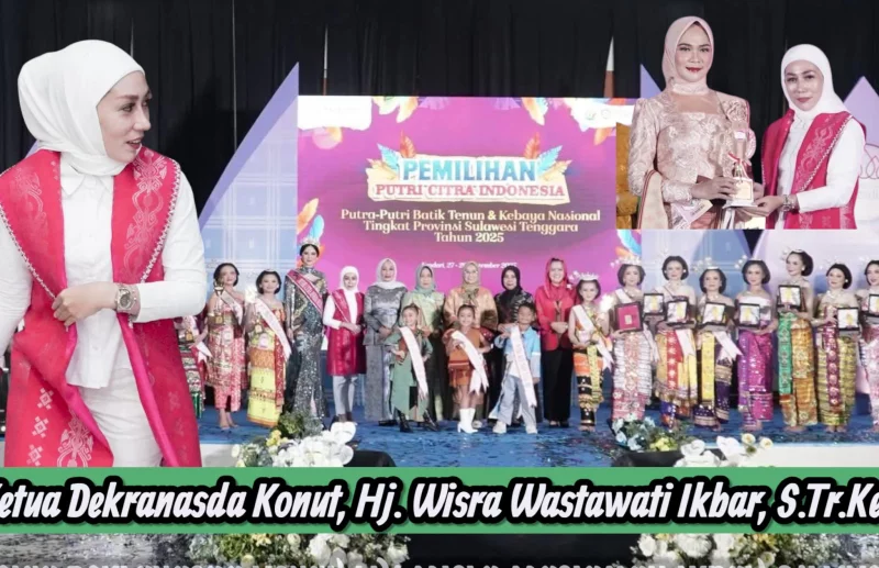 Indosultra.Com, Konawe Utara – Ketua Dewan Kerajinan Nasional Daerah (Dekranasda) Kabupaten Konawe Utara (Konut) Wisra Wastawati Ikbar, menyampaikan ajang Pemilihan Putri Citra Indonesia dan Putra Putri Batik Tenun Sultra dan Kebaya Nasional 2025 merupakan langkah nyata membangun harapan dan tujuan.