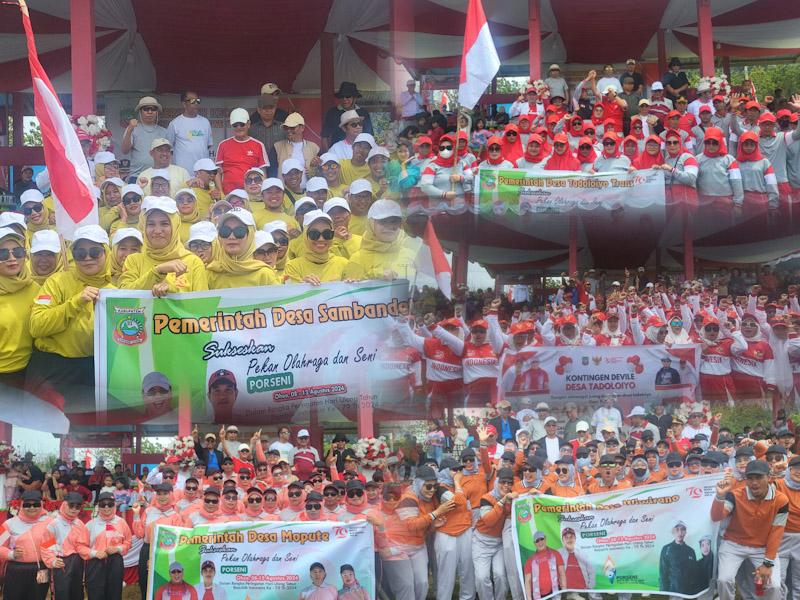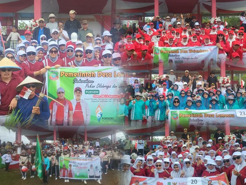 Ribuan peserta devile dari berbagai Desa, kelurahan, kecamatan Oheo, dan Langgikima sampai pelajar tingkat TK, SD, SMP, serta SMA, antusias mengikuti pembukaan Porseni.